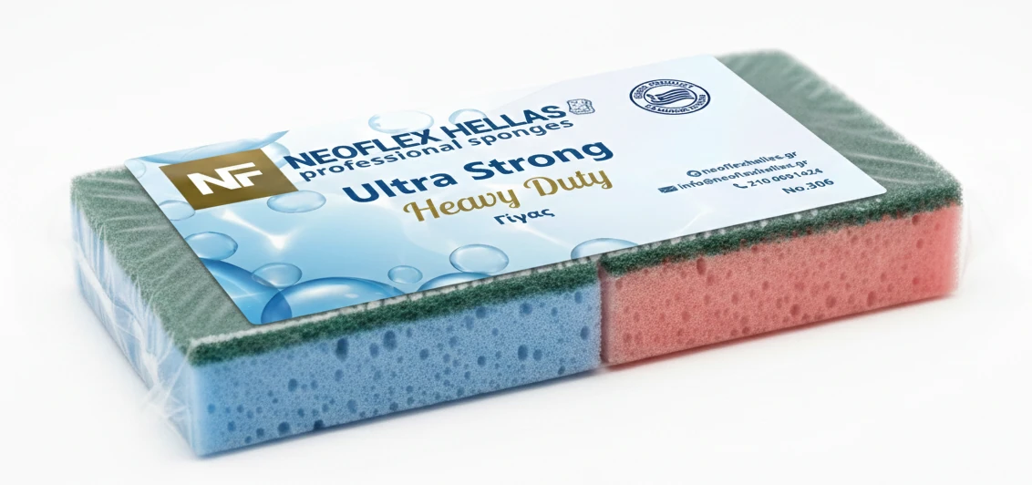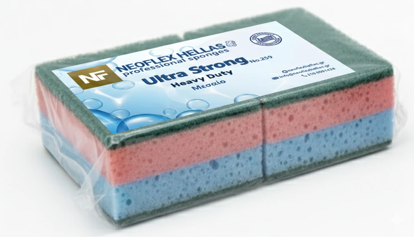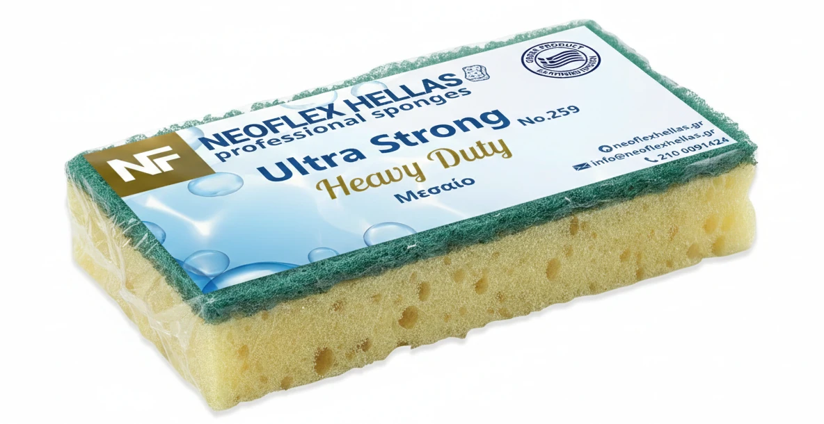 Ποιότητα Αφρολέξ: Υδρόφιλο Αφρολεξ 35kg/m³, με κυψέλες που επικοινωνούν μεταξύ τους στο εσωτερικό του σπόγγου για τη μέγιστη υδροαπορρόφηση και συγκράτηση μικροβίων